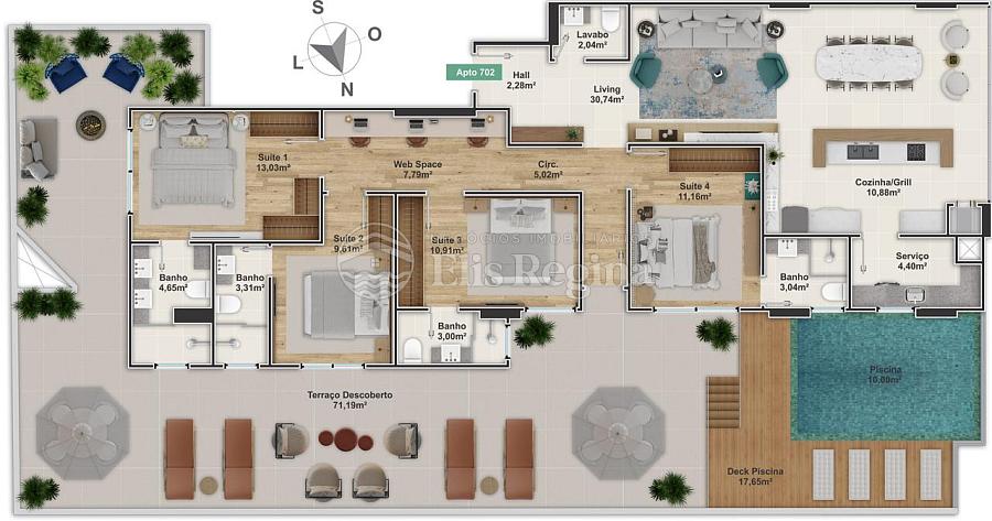Cobertura:4 suítes com 237,5m² privativos