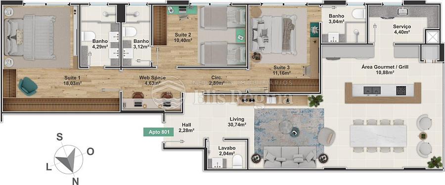 3 dormitórios (3 suítes)